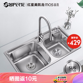 Superte舒美特红星美凯龙直选304不锈钢厨房水槽双槽77 45cm 绝对值 家装家纺 绝对值